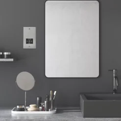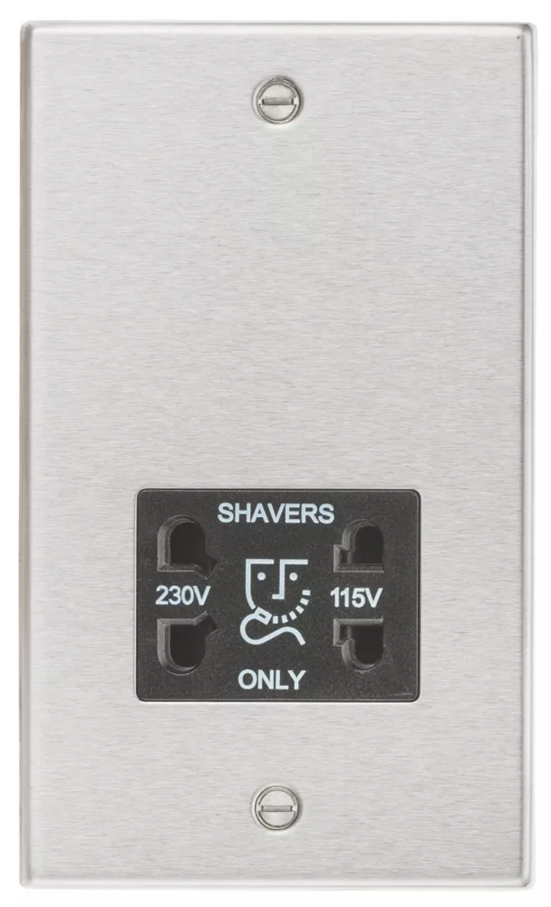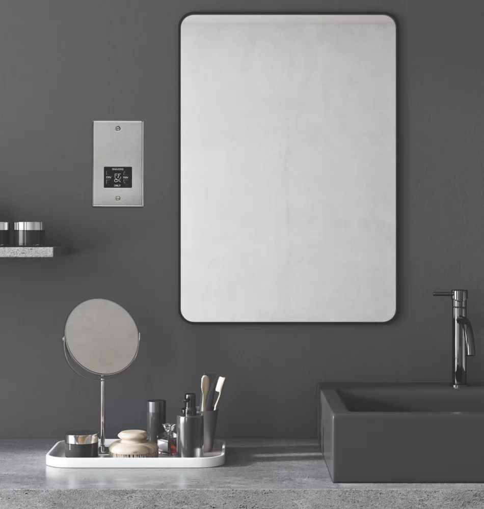 Raised, square-edge design dual voltage shaver socket. Ideal for bathroom upgrades.