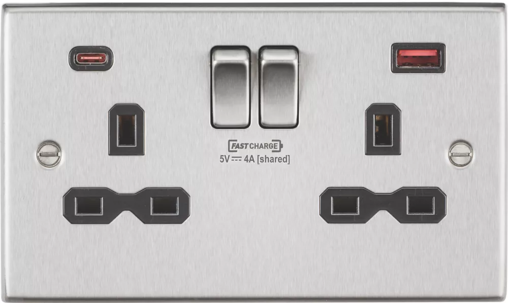 Raised rounded-edge metal design with matching metal rockers. Provides 0-50% charge in under 30 minutes with compatible devices. Ideal for fast charging.