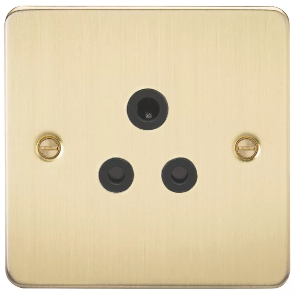 Round pin socket with built-in gasket. Flat plate, low profile metal design. Ideal for use in custom lighting solutions.