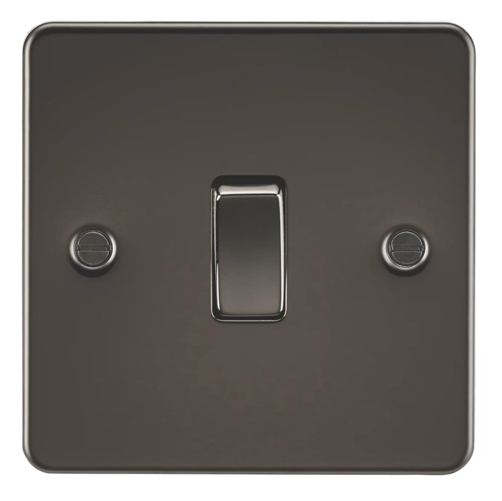Flat plate, low profile metal design with built-in gasket. Ideal for fixed appliances such as water heaters. Matching metal rocker.