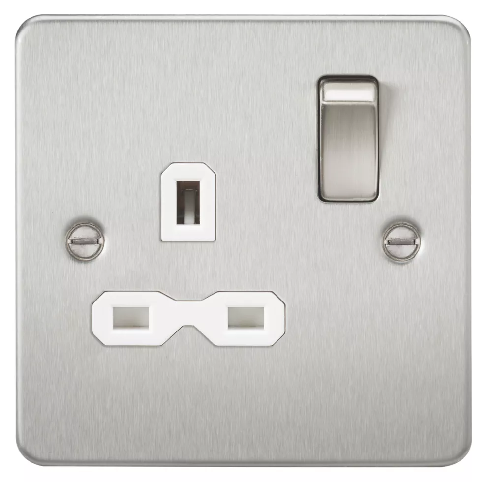 British General Nexus Metal 13A 1-Gang DP Switched Plug Socket Brushed Iridium With Black Inserts