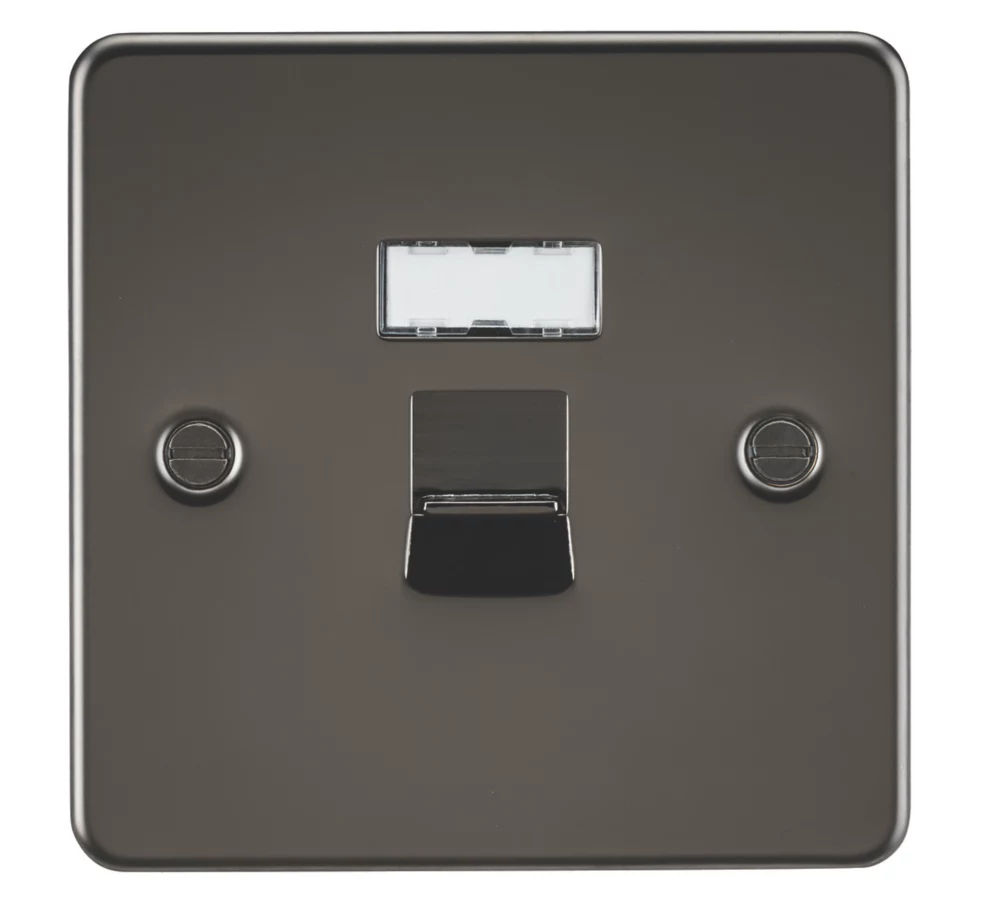 Flat plate, low profile design socket with IDC terminals (tool included). Built-in gasket. Ideal for creating wired networking points around the home. Supplied with write-on designation label.