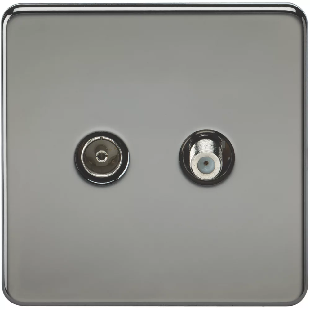 Screwless, flat profile design socket. Blocks interference from neighbouring installations, such as in apartment blocks. Ideal for TV/Coax and SAT TV/F-type connections (isolated) with communal dishes and aerial installations. Built-in gasket.