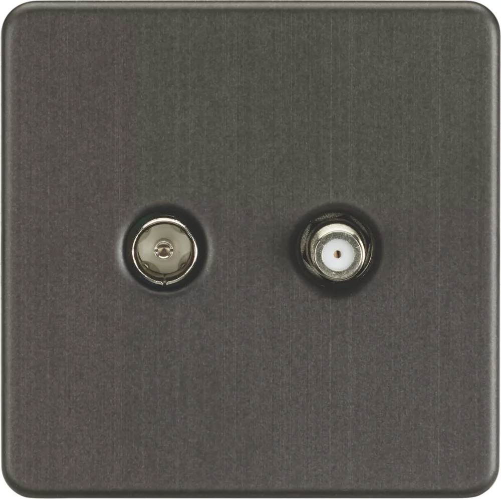 Screwless, flat profile design socket. Blocks interference from neighbouring installations, such as in apartment blocks. Ideal for TV/Coax and SAT TV/F-type connections (isolated) with communal dishes and aerial installations. Built-in gasket.