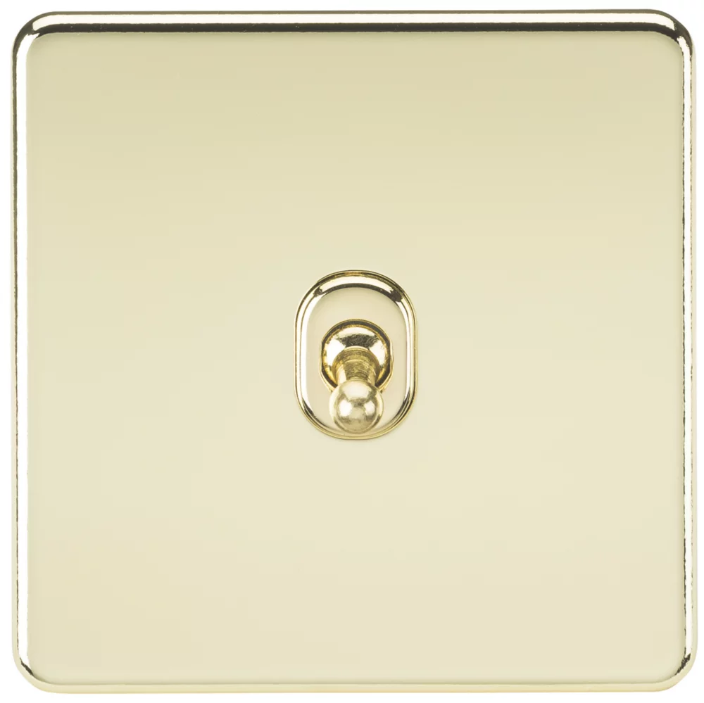 Screwless, flat plate design with built-in gasket. Suitable for use where there are 3 switches controlling a lighting group. Features toggle switch.