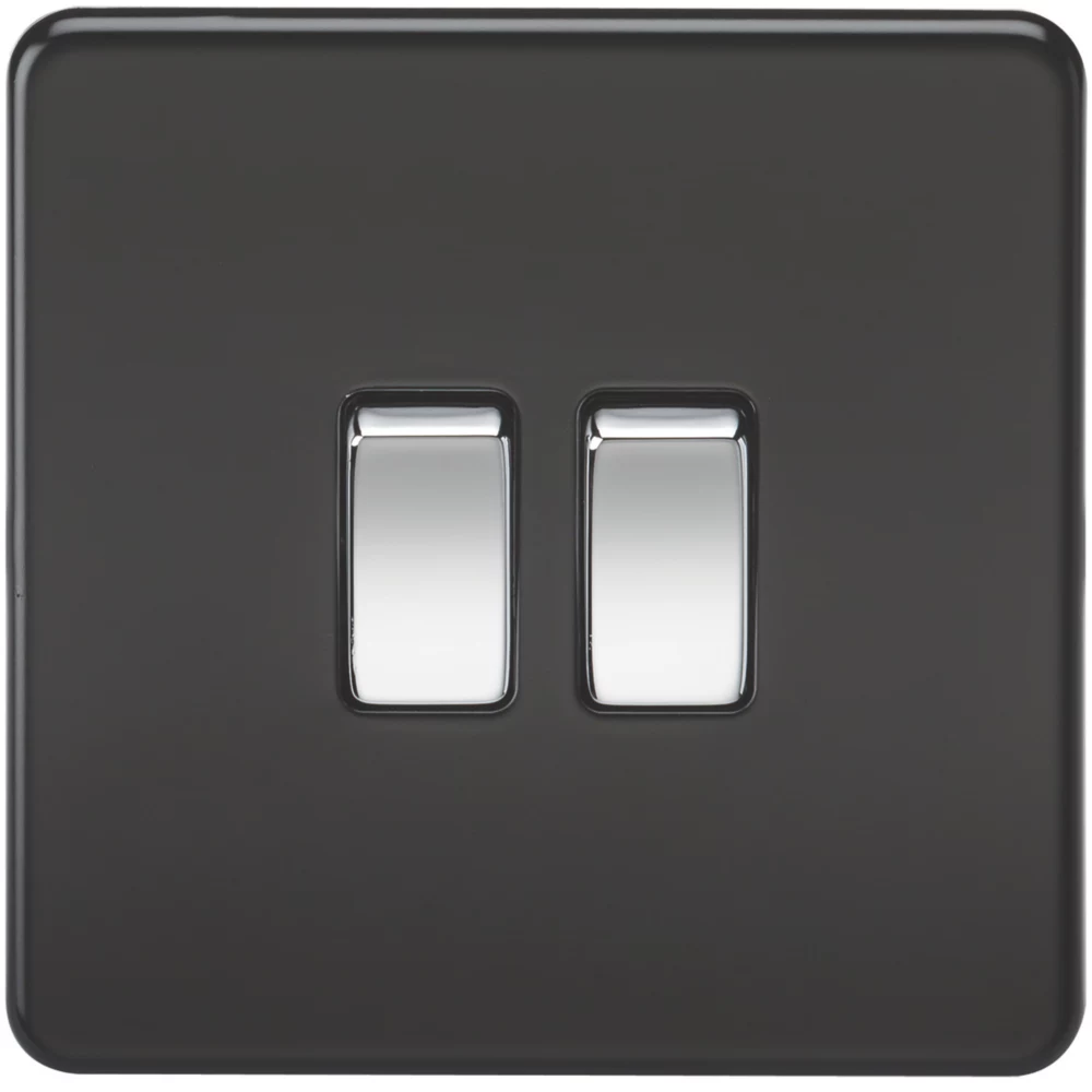 Screwless, low profile metal design with built-in gasket. Contrasting metal rockers.
