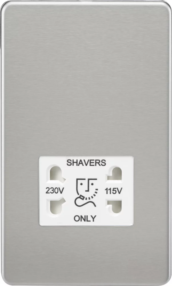 Screwless, flat plate, design dual voltage shaver socket. Ideal for bathroom upgrades.