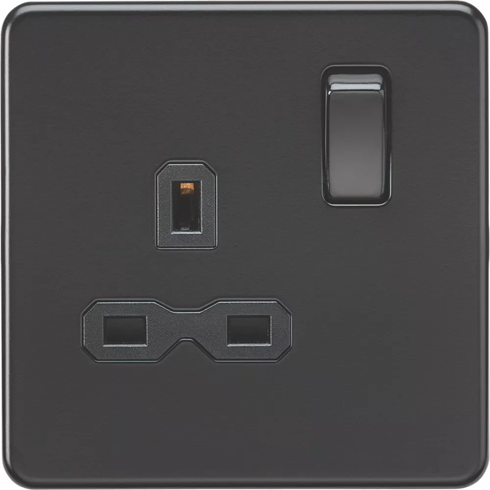 British General Nexus Metal 13A 1-Gang DP Switched Plug Socket Brushed Iridium With Black Inserts