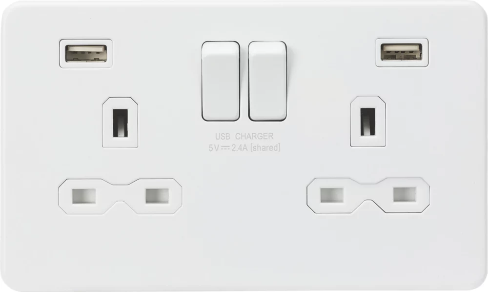 MK Contoura 13A 1-Gang DP Switched Socket + 2A 2-Outlet Type A USB Charger Grey With White Inserts
