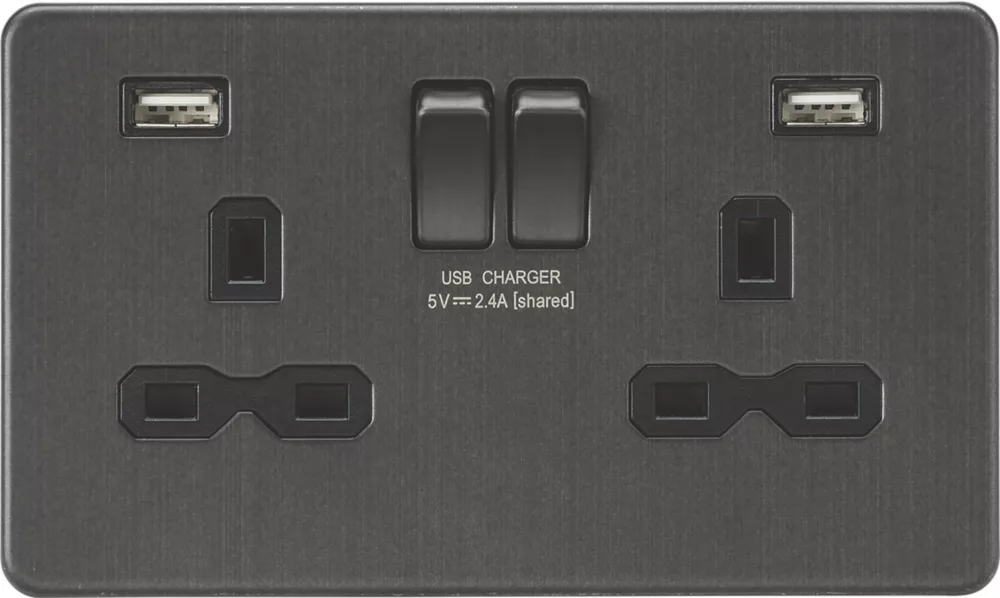 MK Contoura 13A 1-Gang DP Switched Socket + 2A 2-Outlet Type A USB Charger Grey With White Inserts