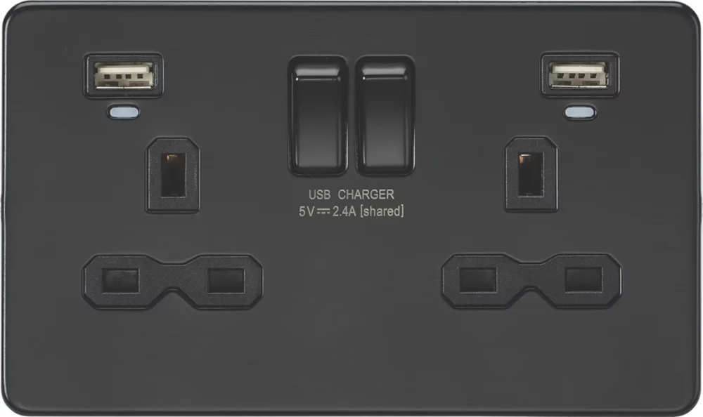 MK Base 13A 1-Gang DP Switched Socket + 2.4A 1-Outlet Type A USB Charger White With White Inserts