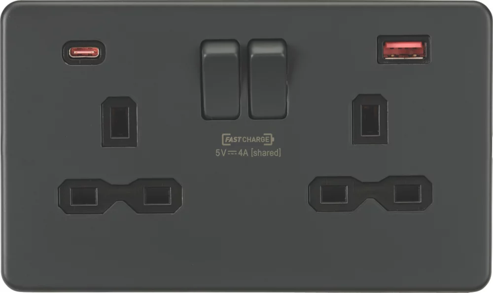 MK Contoura 13A 1-Gang DP Switched Socket + 2A 2-Outlet Type A USB Charger Grey With White Inserts
