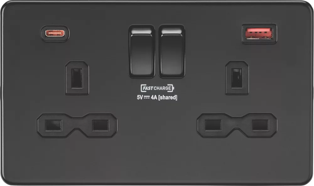 Knightsbridge FPR9000BC 13A 2-Gang DP Switched Double Socket Brushed Chrome With Black Inserts
