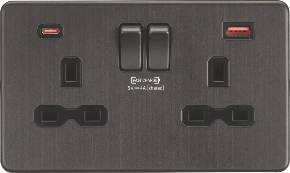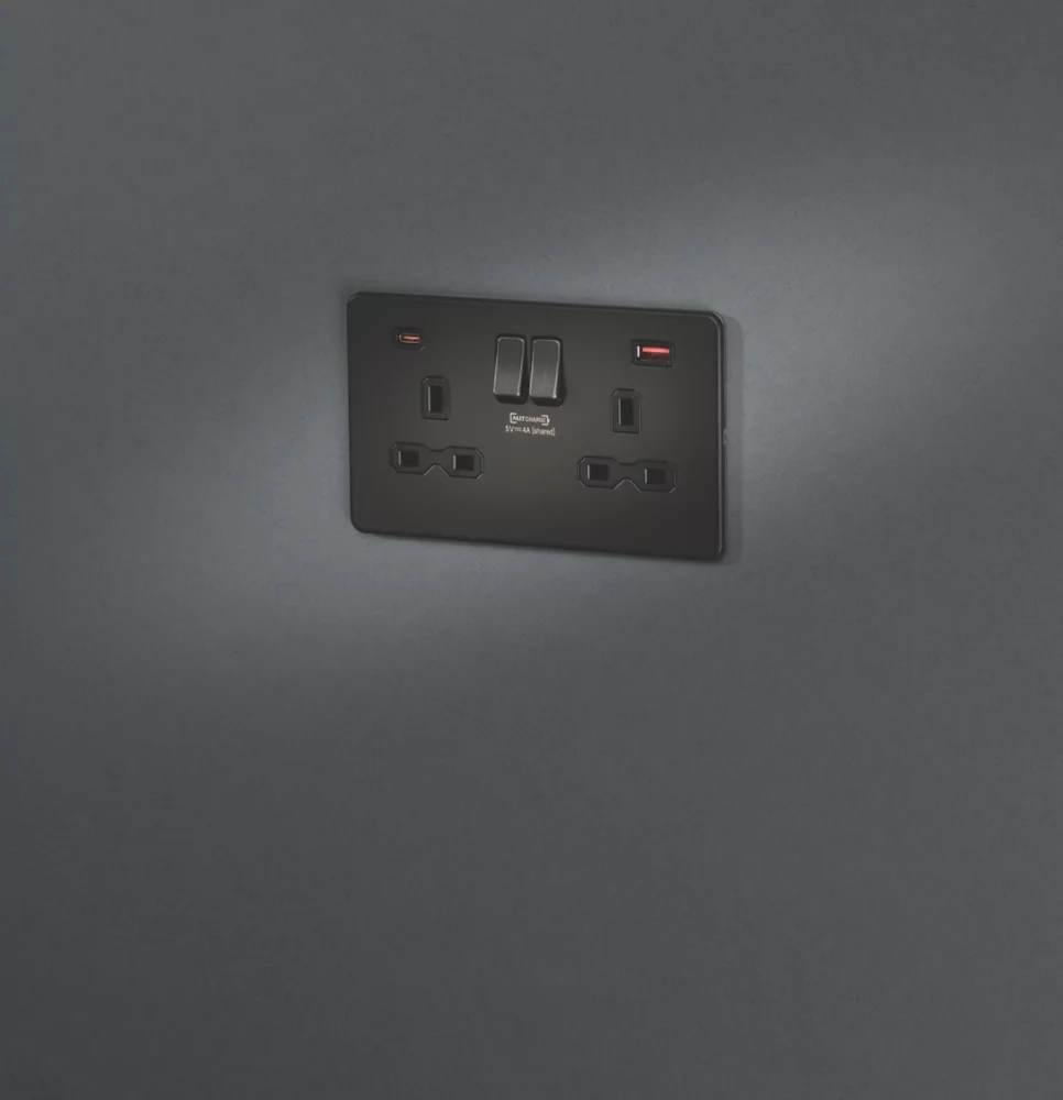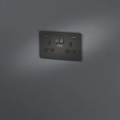 MK Contoura 13A 1-Gang DP Switched Socket + 2A 2-Outlet Type A USB Charger Grey With White Inserts