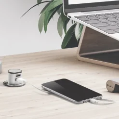 Compact, push-activated, pop-up USB charging solution. Recess-mounts into desks or works surfaces, with 2.5mm projection when closed. Ideal for workstations and offices, or for installing into suitable furniture to create a bespoke charging point. Minimum mounting thickness 10mm.
