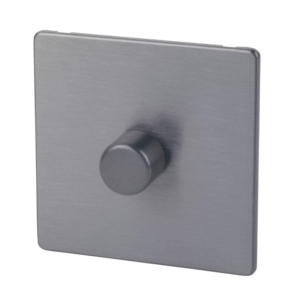 Clip-on front plate with cutting edge design for mains and low voltage dimmer switches.