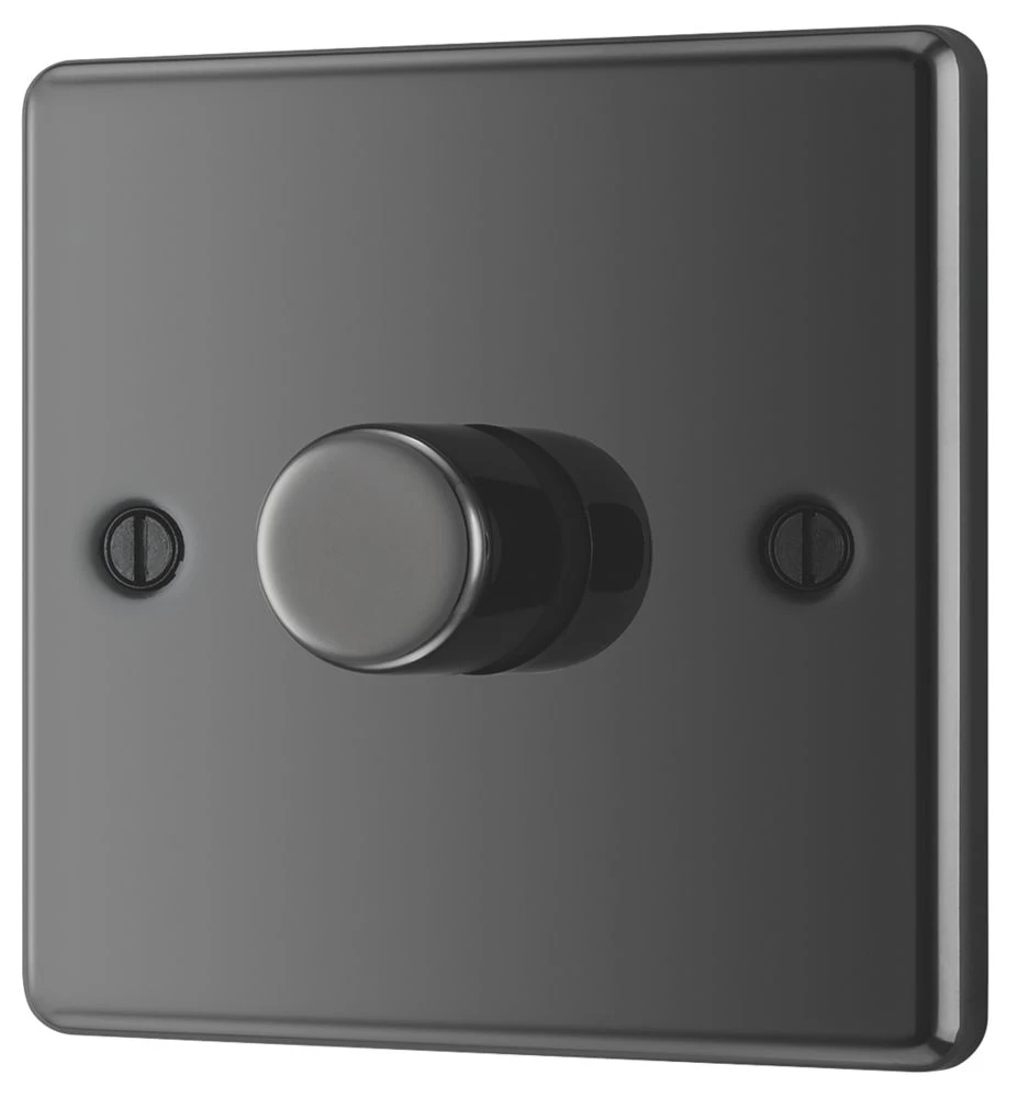 Black nickel 2-way dimmer. Rotary adjustment for desired mood setting.