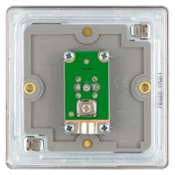 Coaxial TV socket with decorative, screwless flat-plate. Slim, clip-on profile to complement any interior decor.