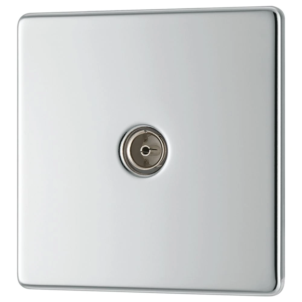 Coaxial TV socket with decorative, screwless flat-plate. Slim, clip-on profile to complement any interior decor.