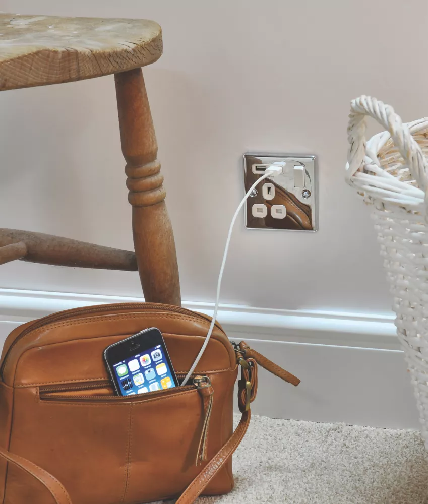 Decorative switched socket with USB charging. Features angled, in-line terminals and includes backed out captive screws for easy installation. Ideal for charging iPads, iPhones, tablets, mobiles, cameras and more.
