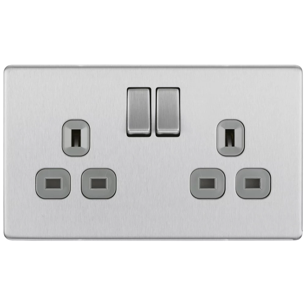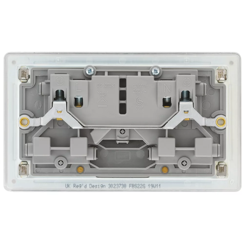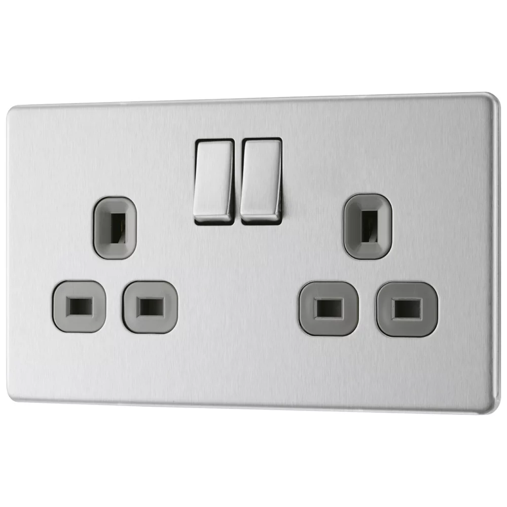 LAP 13A 2-Gang DP Switched Power Sockets Brushed Stainless Steel With Graphite Inserts 5 Pack