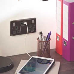 Sleek and slim decorative socket with 2 x USB charging ports. Ideal for charging iPads, iPhones, tablets, mobiles, cameras, MP3s and many more devices. Features angled, in-line terminals and includes backed out captive screws for easy installation. Supplied with a 10mm spacer for 25mm back box fitting.