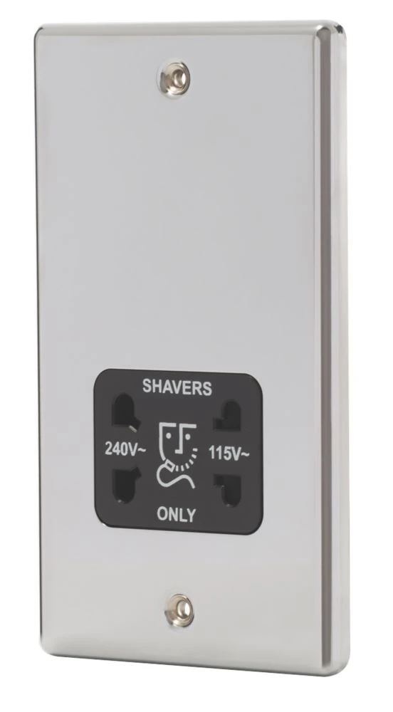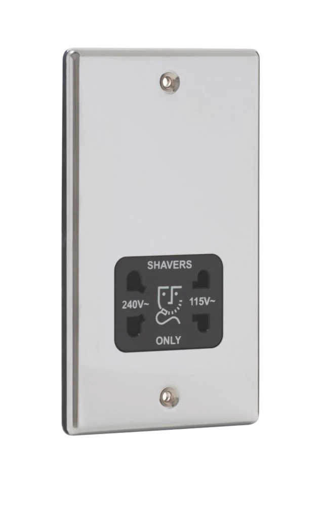 Polished chrome shaver socket with black insert and integral moisture protection gasket.