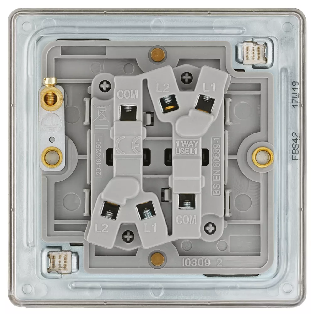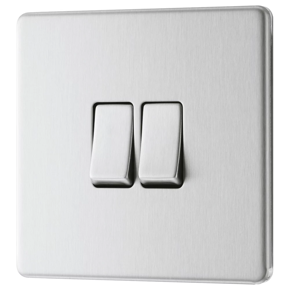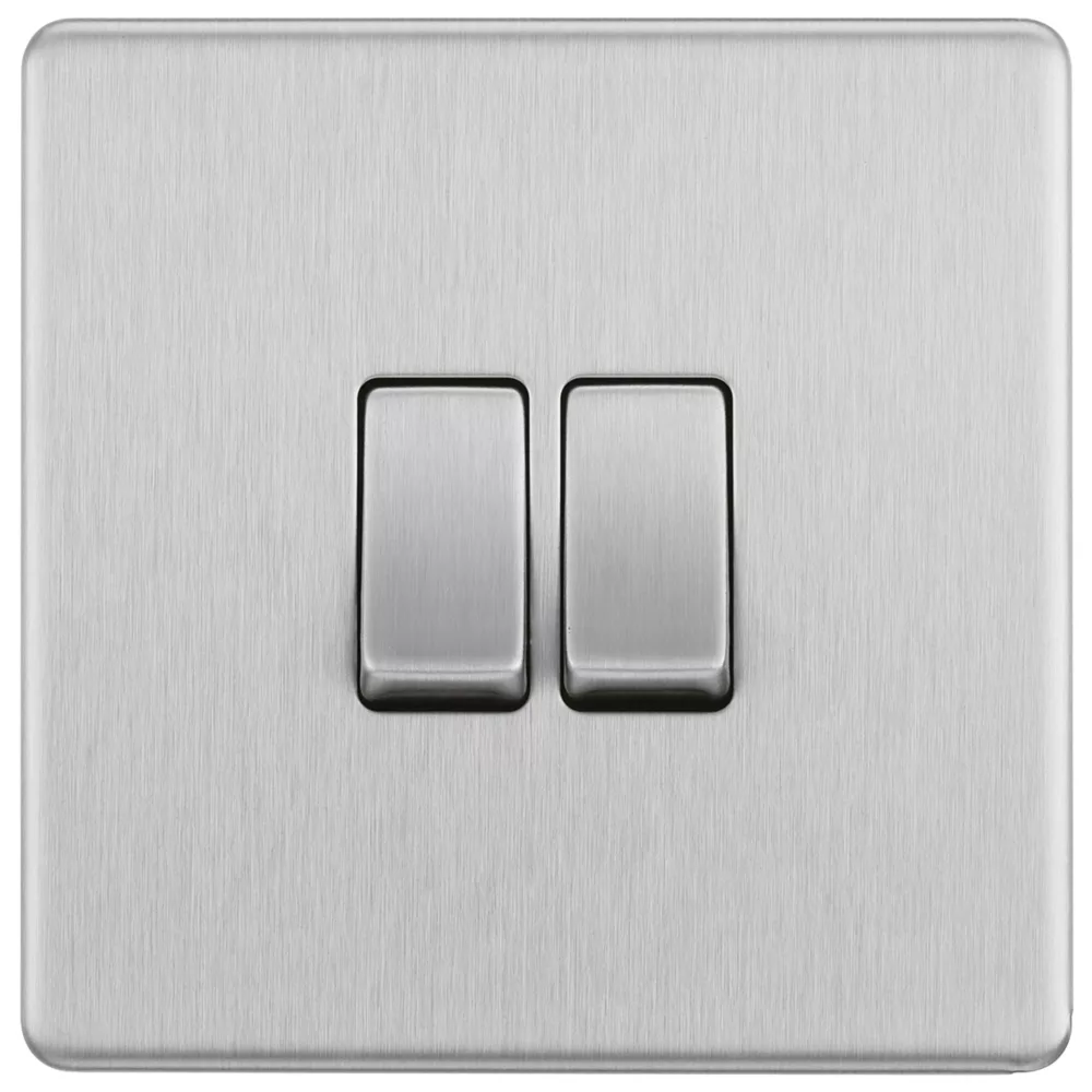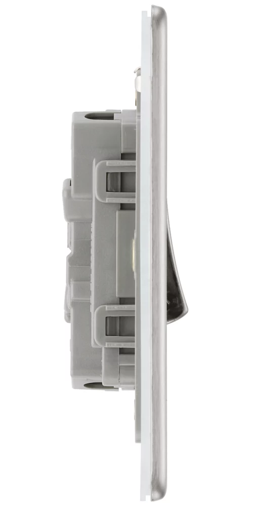 Brushed stainless steel switch with decorative, screwless flat-plate. Slim, clip-on profile to complement any interior decor. Easy to install, ideal for redecoration projects.