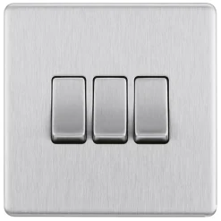 Brushed stainless steel switch with decorative, screwless flat-plate. Slim, clip-on profile to complement any interior decor. Easy to install, ideal for redecoration projects.