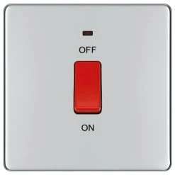 Easy to install, cooker switch with removable, decorative screwless flat-plate. Slim, clip-on profile to complement any interior decor. Ideal for redecoration projects.