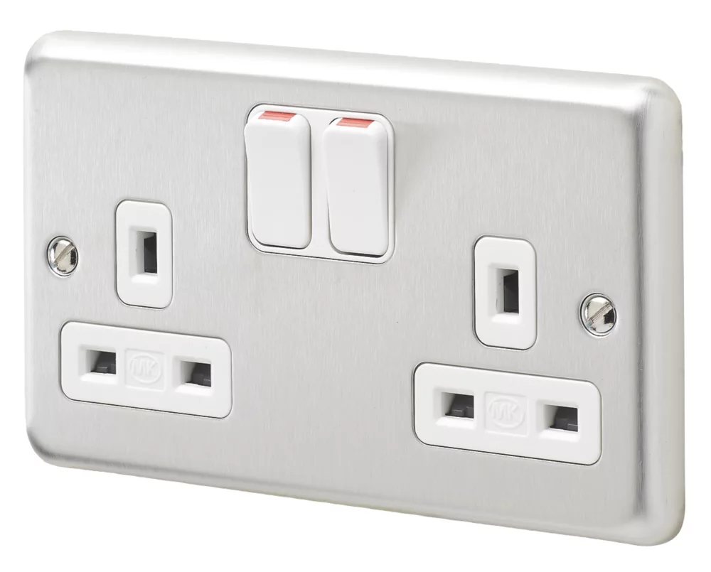 MK Contoura 13A 1-Gang DP Switched Socket + 2A 2-Outlet Type A USB Charger Grey With White Inserts