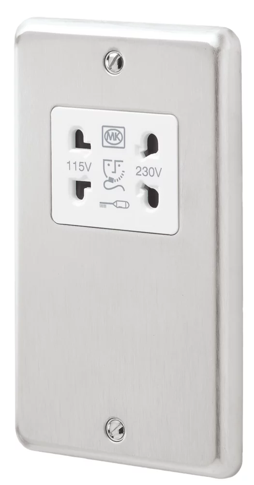 Raised rounded-edge profile with a brushed stainless steel finish. Incorporates a double-wound isolating transformer rated 20VA. Terminals are upwards facing making installation easier. Transformer protected against overload by an automatic solid-state overload device with automatic resetting. Ideal for contemporary and classical interiors. Matching screws.