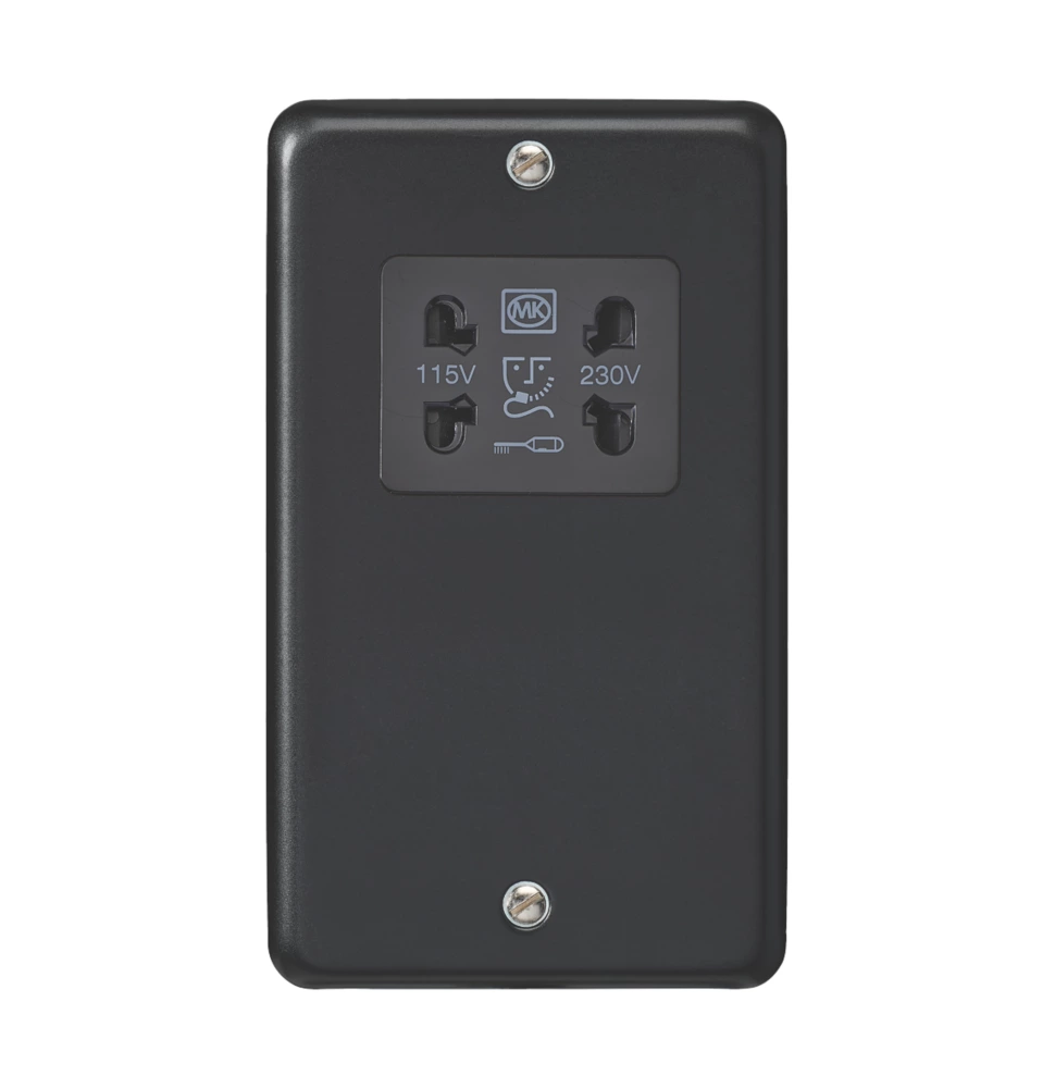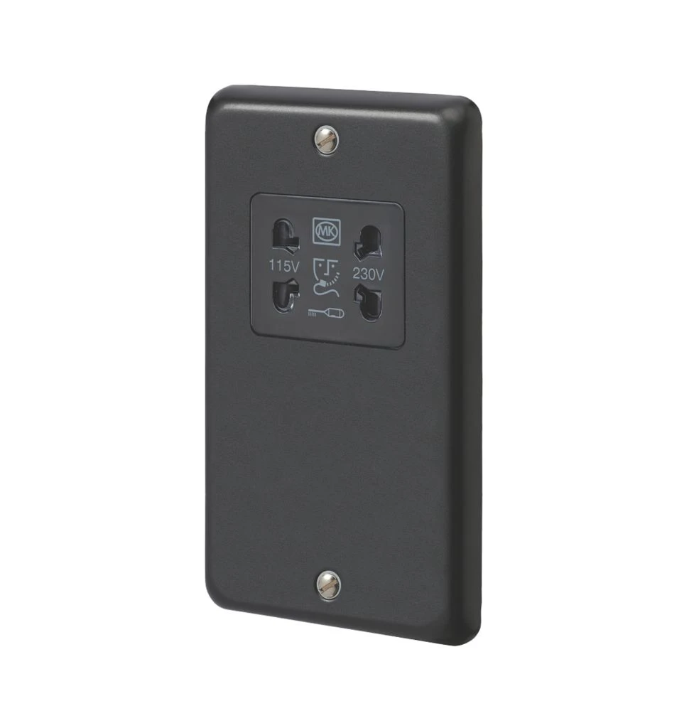 British General Nexus Metal 13A 1-Gang DP Switched Plug Socket Brushed Iridium With Black Inserts