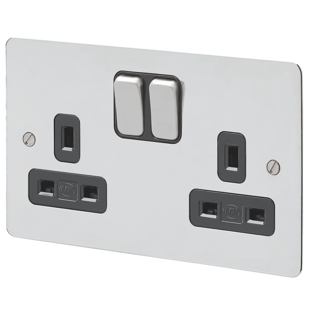 Knightsbridge FPR9000BC 13A 2-Gang DP Switched Double Socket Brushed Chrome With Black Inserts