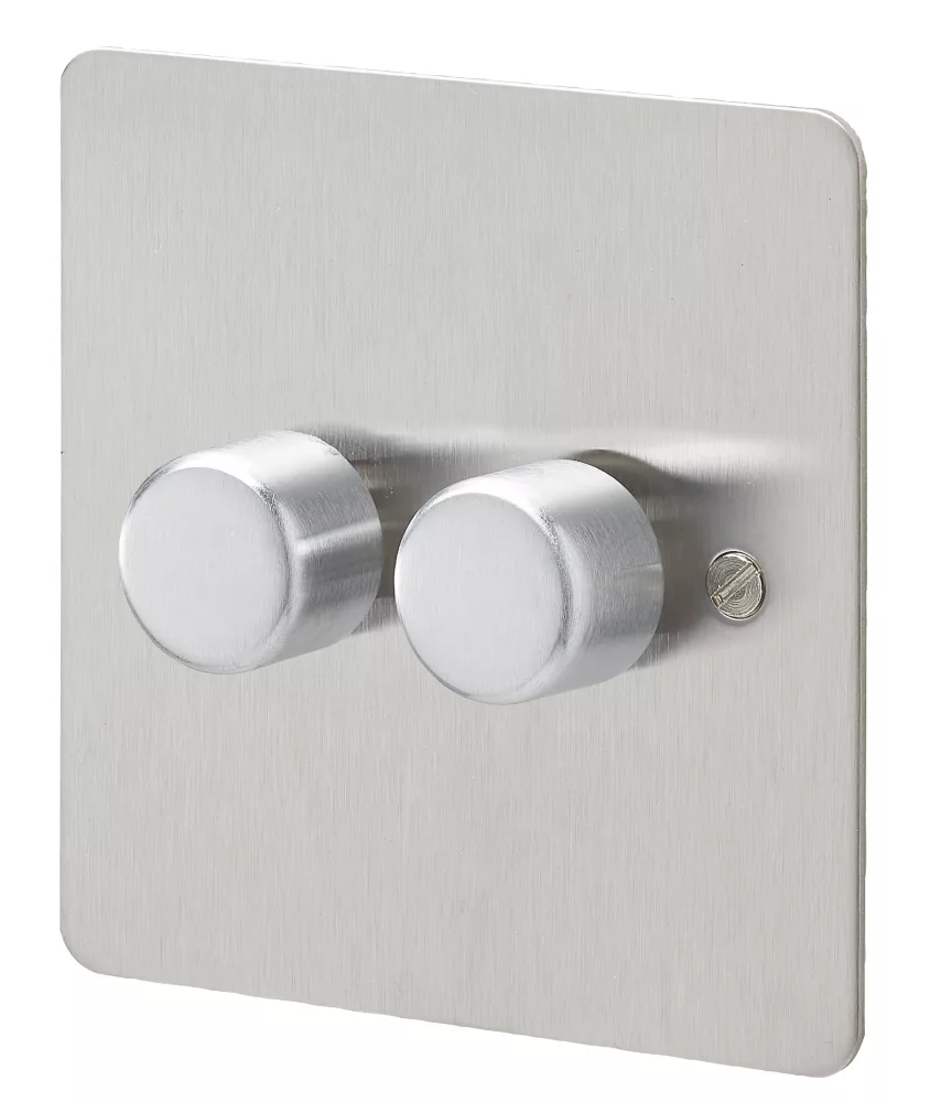 MK Edge 2-Gang 2-Way Dimmer Switch Brushed Stainless Steel