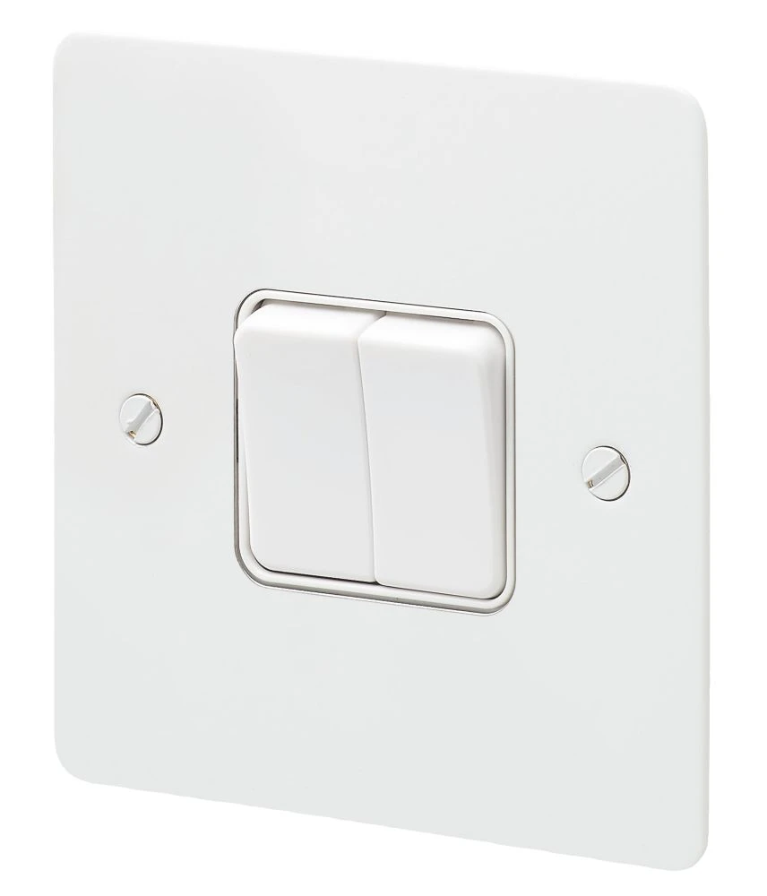 MK Edge 20AX 2-Gang 2-Way Light Switch White With Colour-Matched Inserts