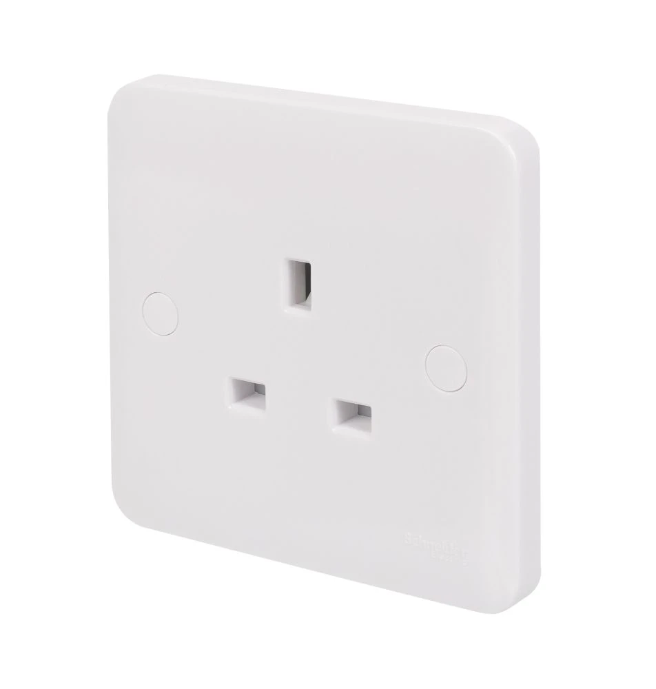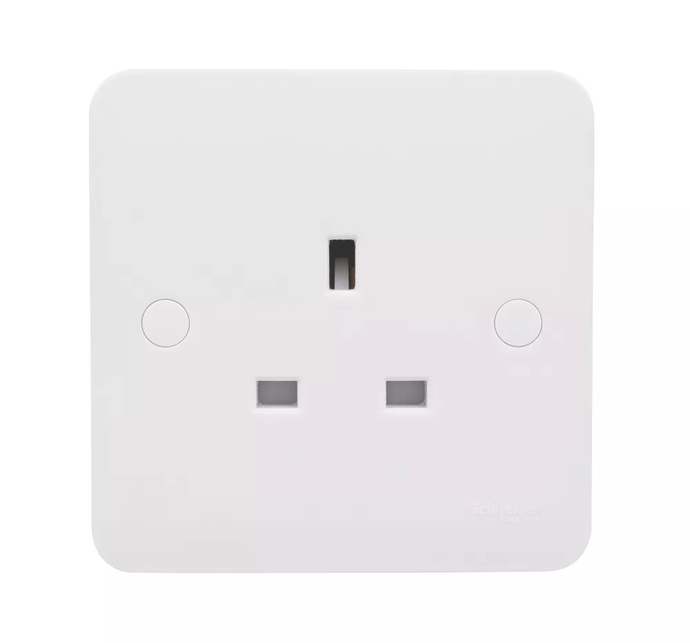 1-gang unswitched socket. Durable, moulded anti-microbial urea construction. Supplied with screw cap covers for a sleek profile finish. Ideal for new construction and refurbishment projects.