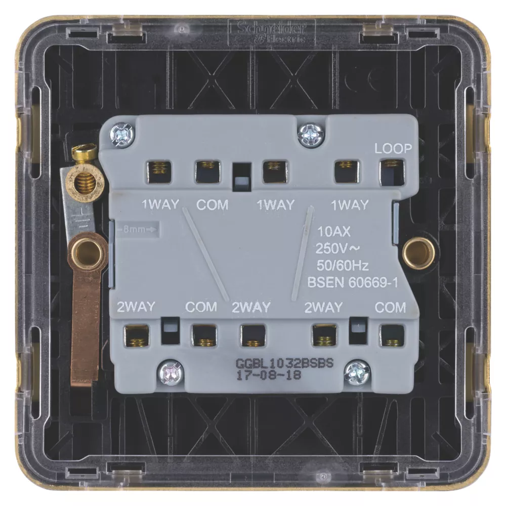 Schneider Electric Lisse Deco 10AX 3-Gang 2-Way Light Switch Satin Brass With Black Inserts