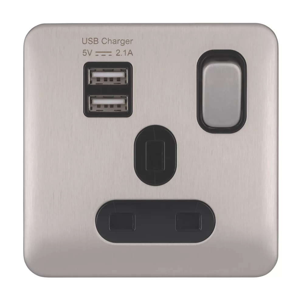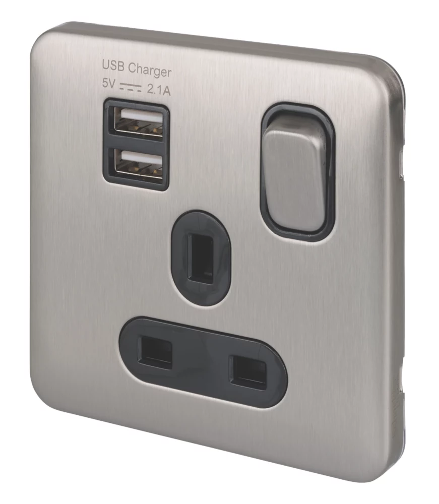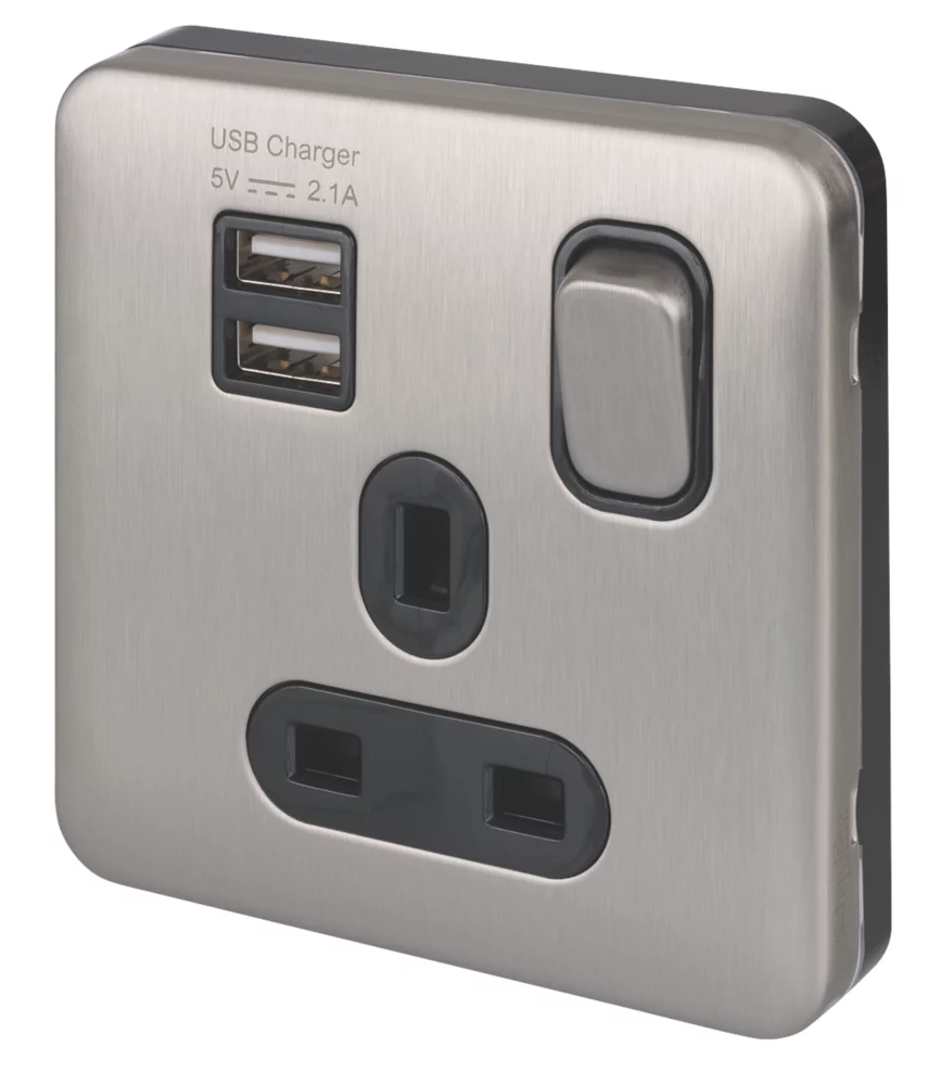 Knightsbridge FPR9000BC 13A 2-Gang DP Switched Double Socket Brushed Chrome With Black Inserts
