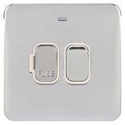 Schneider Electric Lisse Deco 13A Switched Fused Spur With LED Polished Chrome With White Inserts