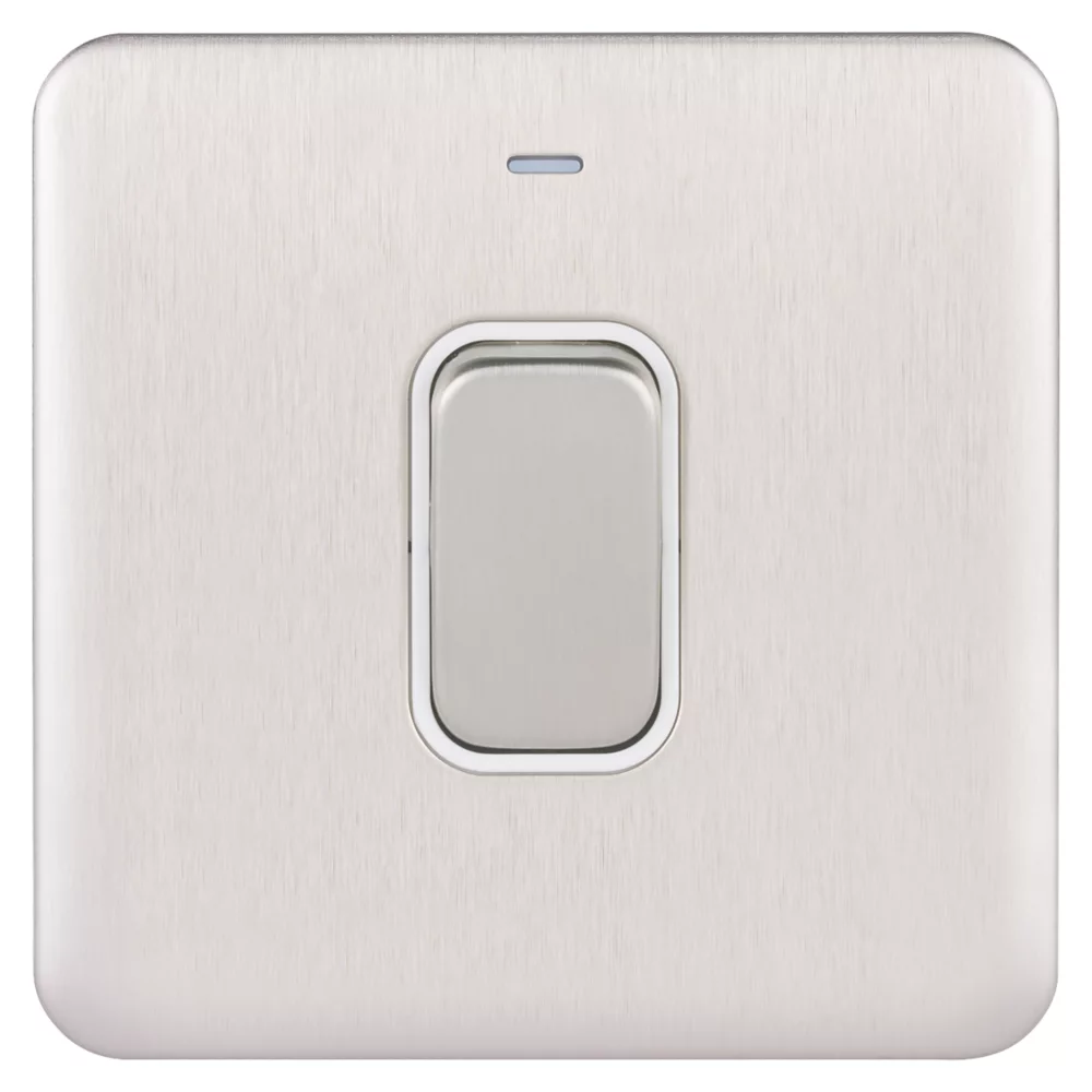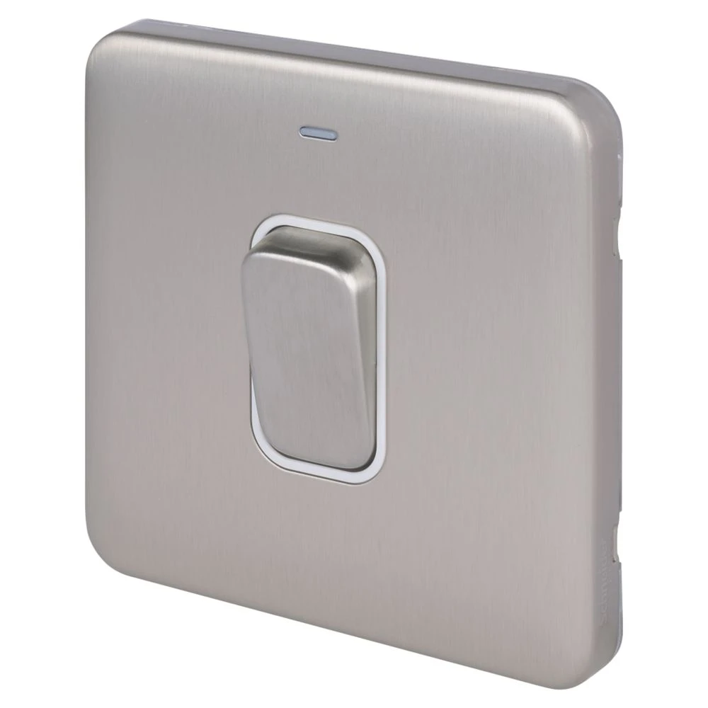 Schneider Electric Lisse Deco 50A 1-Gang DP Cooker Switch Brushed Stainless Steel With LED With White Inserts