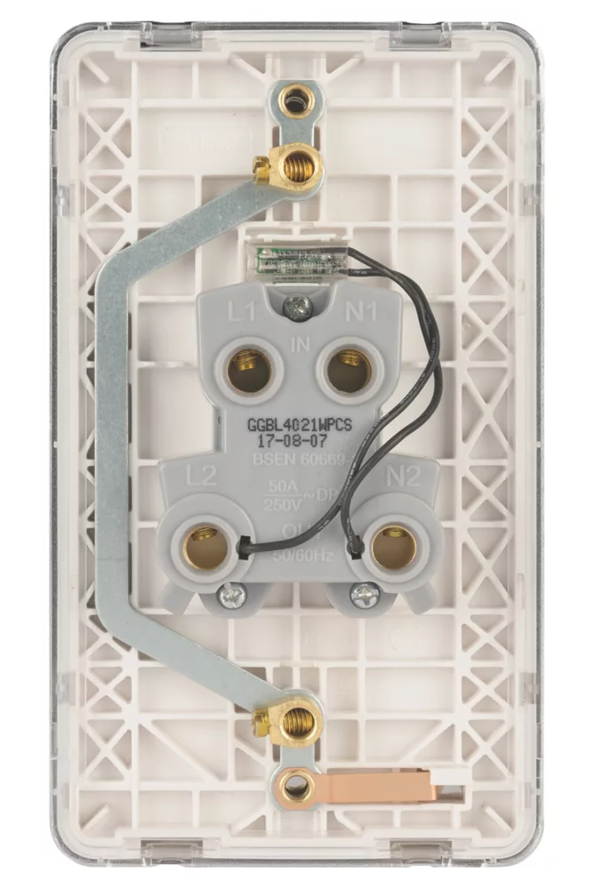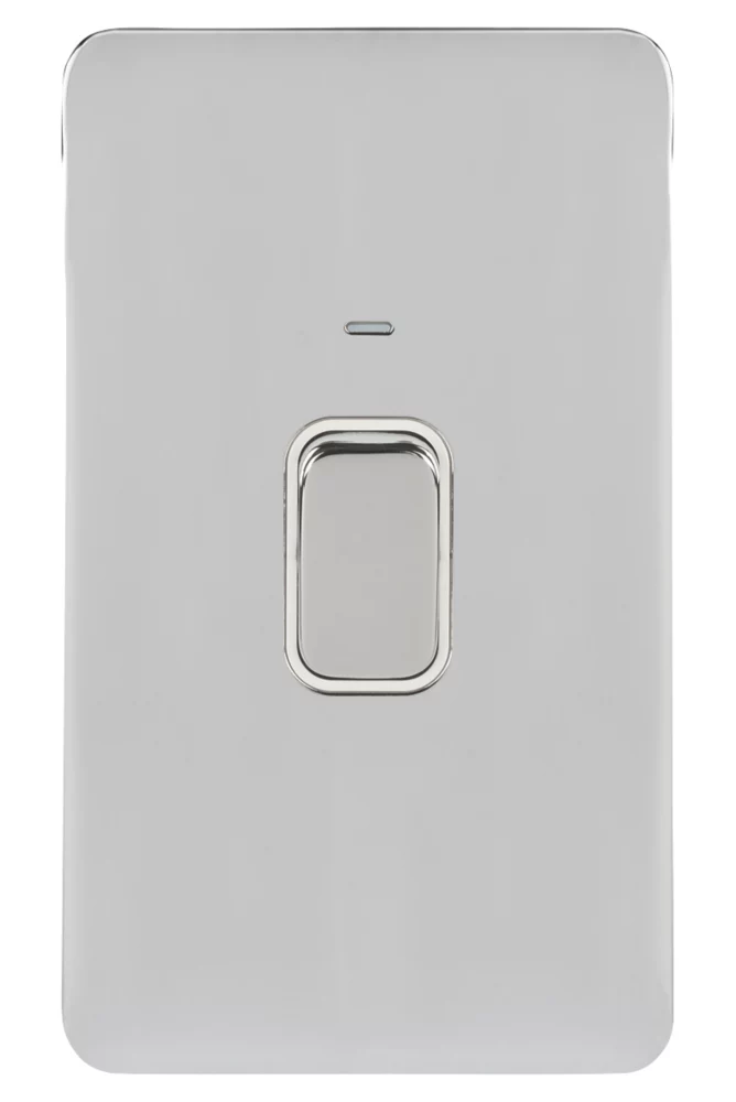 Schneider Electric Lisse Deco 50A 2-Gang DP Cooker Switch Polished Chrome With LED With White Inserts