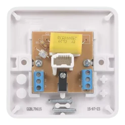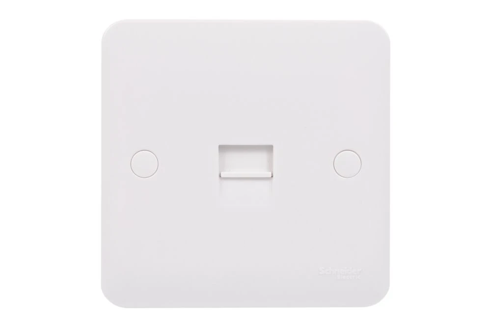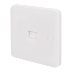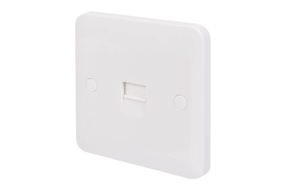 Master telephone and data outlet. Smooth, soft-curved plate profile. Made from durable, high quality urea with antimicrobial properties. Ideally suited for new constructions and refurbishment projects. Supplied with screw cap covers for a sleek finish.