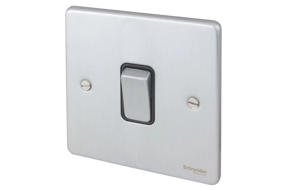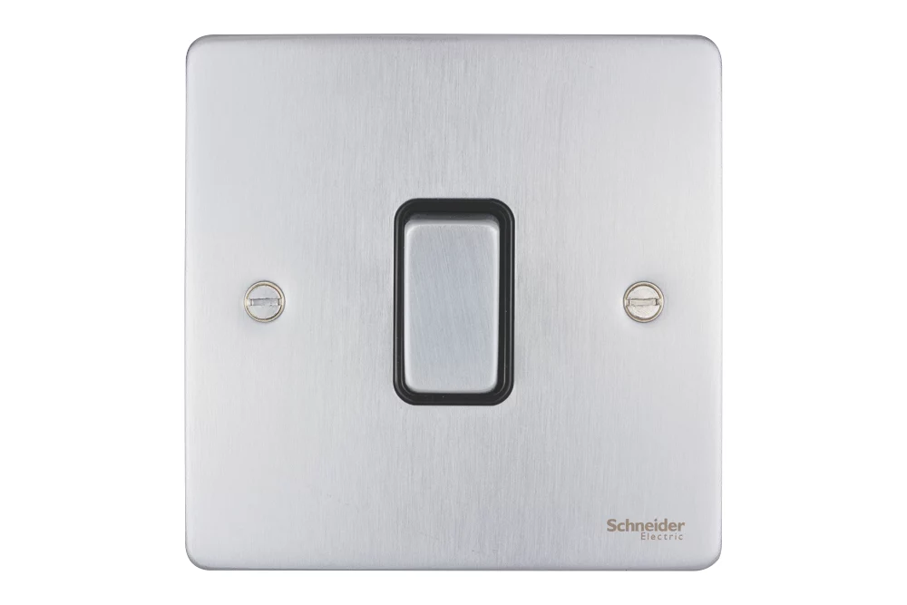 Schneider Electric Lisse Deco 13A 1-Gang SP Switched Plug Socket Polished Chrome With Black Inserts