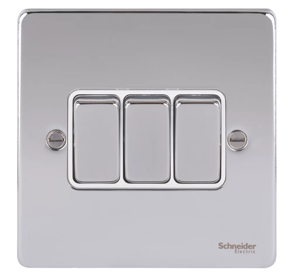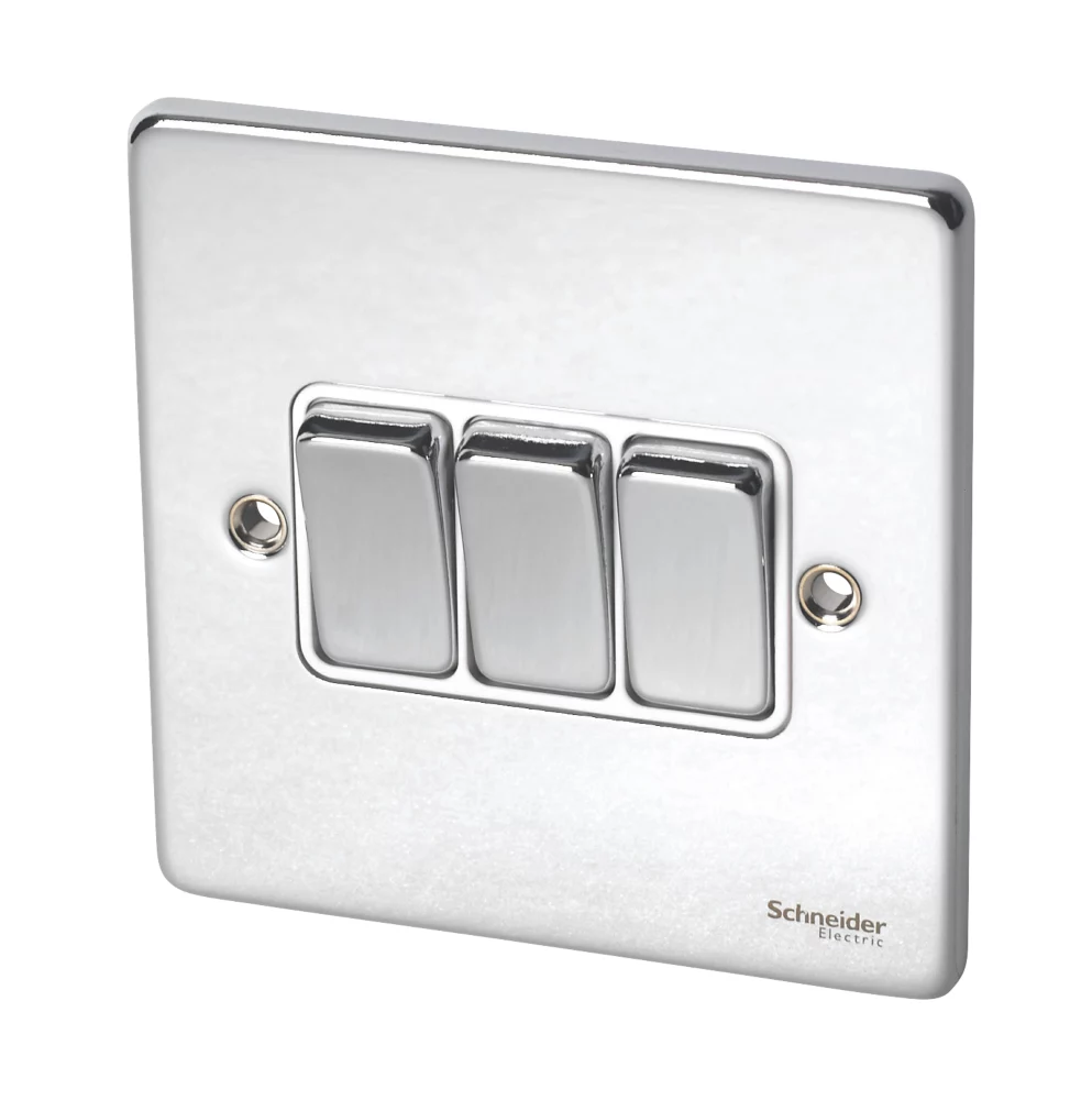 Schneider Electric Lisse Deco 1-Gang Triplex Multimedia Socket Polished Chrome With Black Inserts