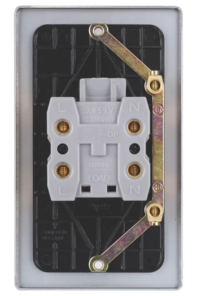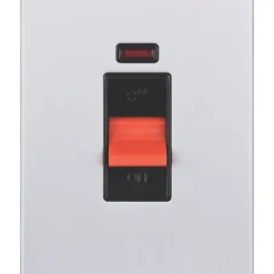 Low profile, 2-gang, 50A, double-pole control switch with neon indicator. Ideal for uneven walls and retrofitting.