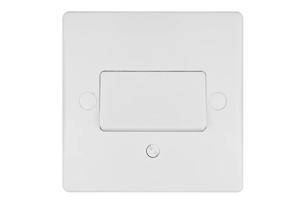 Lockable fan isolator switch with ultimate slimline curved profile.