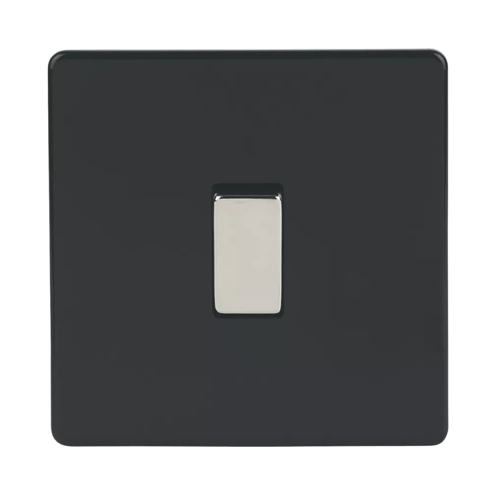 Gloss black, low profile, screwless faceplates matched with polished chrome rockers and knobs for the ultimate in contemporary switches, sockets and dimmers.