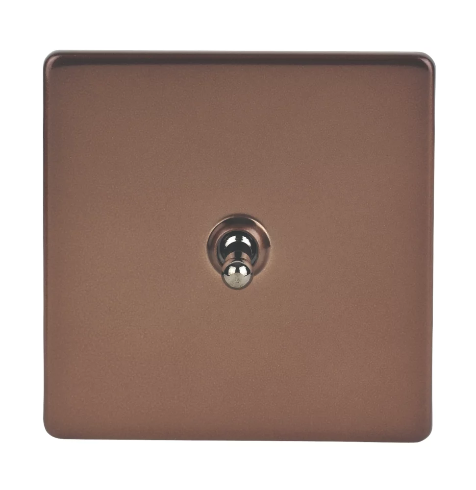 Warm brown, low profile, screwless faceplates matched with black nickel rockers and knobs for the ultimate in contemporary switches, sockets and dimmers.