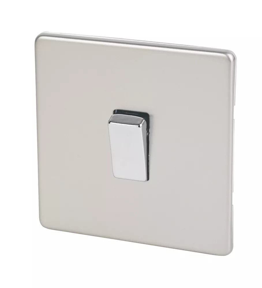 Low profile, interchangeable screwless faceplate for a sleek, contemporary style. Satin chrome finish. Concealed fixings.